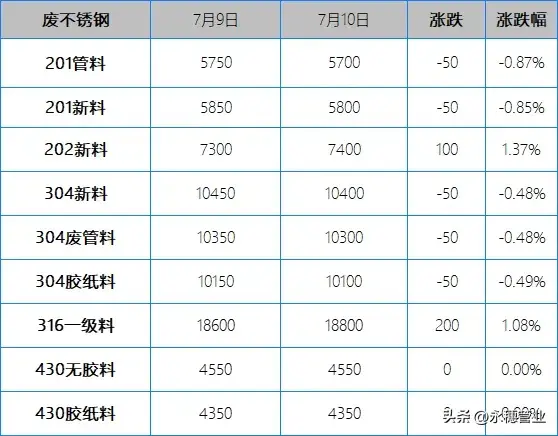 7月10日佛山不銹鋼方管市場(chǎng)訊,昨日倫鎳下跌265美元至17140美元/噸,持倉(cāng)148686手,成交4522手,庫(kù)存97872噸。今日14:40,倫鎳飄綠,運(yùn)行在17059美元/噸附近。不銹鋼水管|雙卡壓式管件|304不銹鋼水管品牌|佛山市永穗不銹鋼有限公司