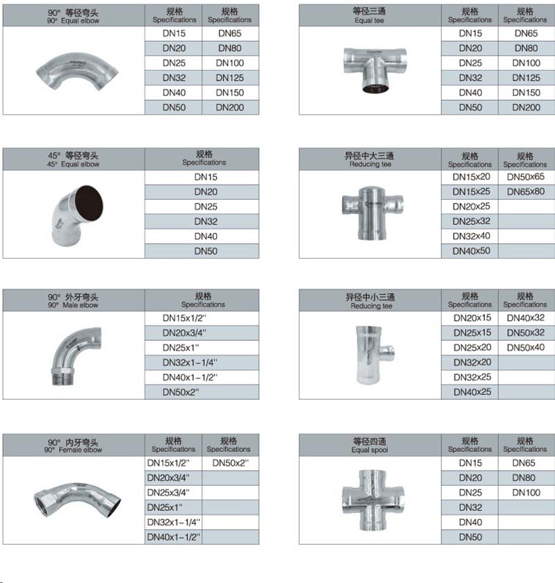 承插焊不銹鋼管件,衛(wèi)生級(jí)管件,主要適用于石油化工、醫(yī)藥衛(wèi)生、電力、航天、軍工、消防、冶金、造船、燃?xì)?、核電、及環(huán)境保護(hù)等要求承受壓力高、尺寸精密等部門及領(lǐng)域。